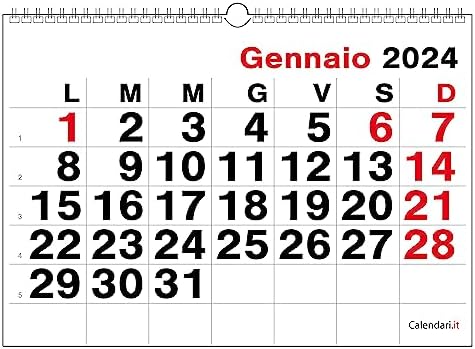 Calendario 2024 numeri grandi orizzontale da muro Calendari.it