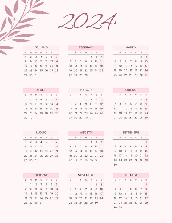 2024 Calendar Italy Calendar With PINK and BEIGE Background Etsy