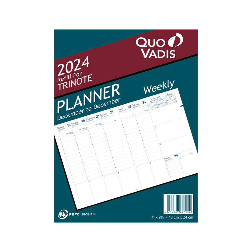 Quo Vadis 2024 Trinote Vertical Weekly Planner with Notes Refill Onl