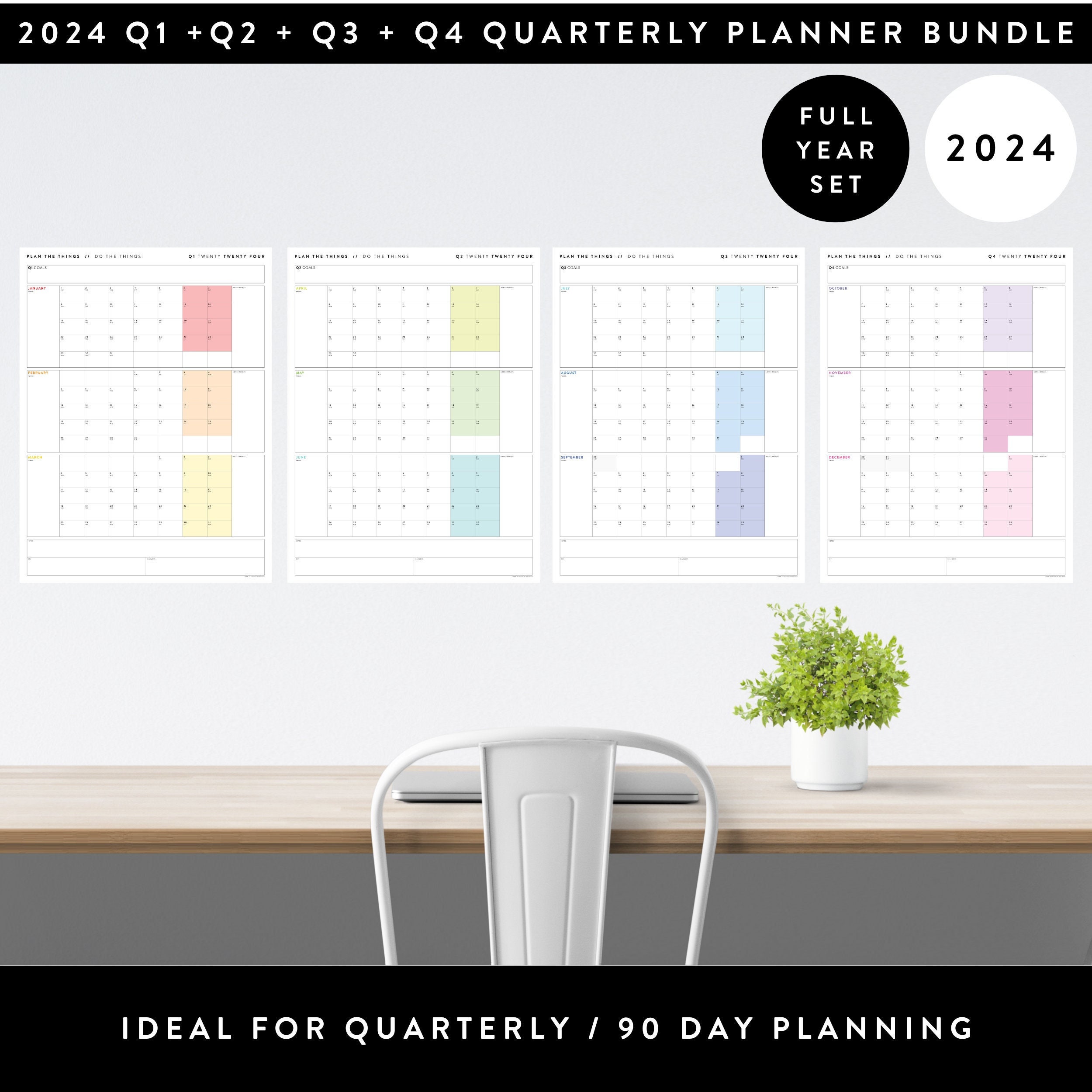 2024 Vierteljährlicher Kalender druckbare leere datiert Etsy